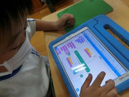 年に数回、各学校にICT支援員が来てくれます。豊田市の予算で教育委員会が派遣してくれます。4時間目に3年生教室でプログラミングの授業をしていただきました。いろいろな用語が次々と出てきますが、子どもたちは支援員さんの話を聞いてどんどん進めていきます。感心しました。