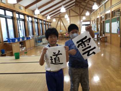 作品を見せにきてくれました。わあ、上手にかけたね!がんばりました。教室に貼ってある前に書いた作品と比べて上手になっていますね!