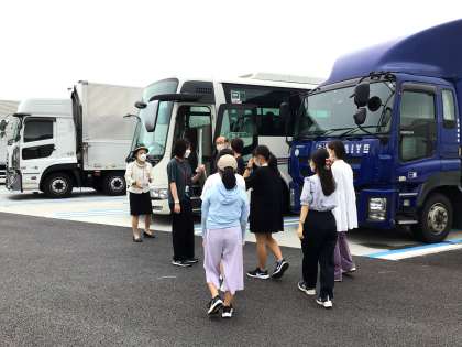 最初の休憩場所です。雨はほとんど降っていません。車酔いをした子もなくみんな元気、順調です。