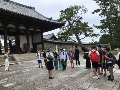 来ました、法隆寺。見ての通り雨は降っていません!国宝の南大門をくぐって今から見学をします。