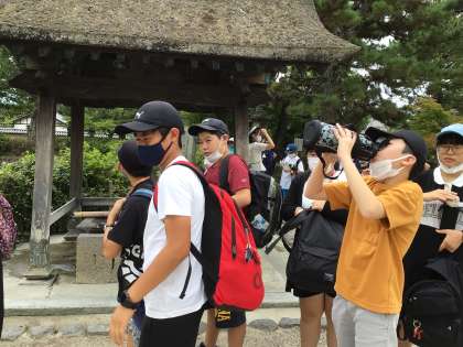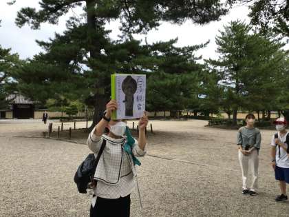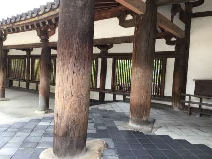 ガイドさんの説明が素晴らしいです。仏像のアルカイックスマイル、回廊のエンタシスの柱(ギリシャ神殿と同じ形)、百済観音はスリムなモデル体型、いろいろと勉強しました。太陽が出てきました。暑いぐらいです。お天気の神様か聖徳太子に守られているかのようです。