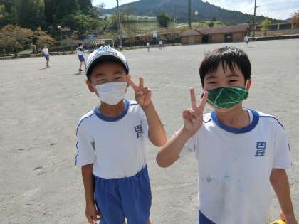 気持ちのよい天気です。昼放課に元気に遊ぶ子どもたちです。