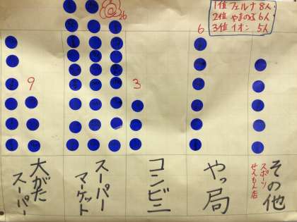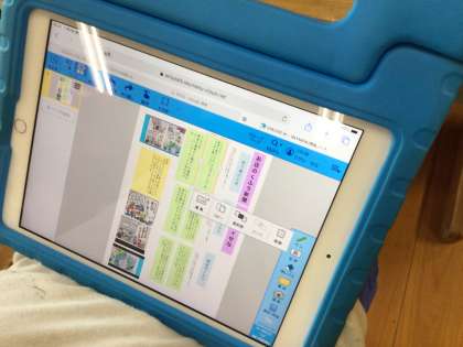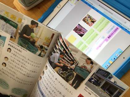 3年生の社会科の様子です。お店が工夫していることについて、子どもたちはおうちの人に話を聞いたり教室で話し合ったりして勉強をしてきました。今はタブレットを使って新聞づくりを行っています。みんな上手にまとめています。ちょっと遠いですが、フェルナ、やまのぶ、イオンでお買い物をすることが多そうですね。