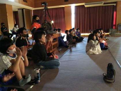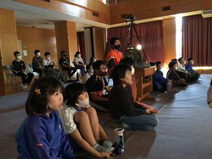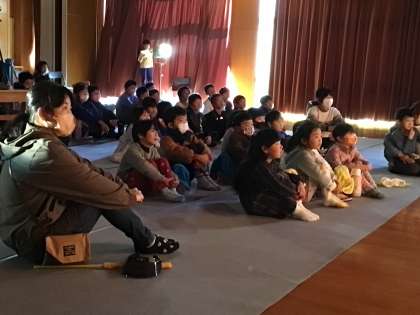 子どもたちは劇に惹き込まれて観ています。前半は4年生、1年生、2年生です。練習を重ねてとても良くなりました。東部こども園の子たちと先生も来てくれました。