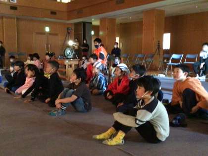 後半の劇が始まりました。5年生の劇です。劇に惹き込まれる2、3年生の子どもたち。