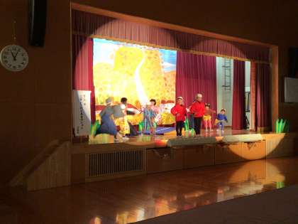 3年生と6年生の劇です。どの学年の劇も下見会の時に比べて見違えるようになりました。当日はさらに張り切って演技することでしょう。とても楽しみです。
