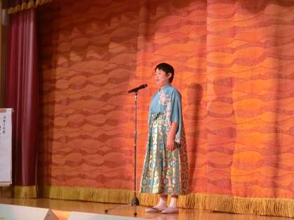 学芸会の終わりに、PTA会長の高田さんからお言葉をいただきました。また、児童を代表して簗瀬くんが話をしました。子どもたちのことを小さいころから知っている来賓の方が「大きくなったんだなと思って涙が出ました」と話してみえました。劇に温かい拍手をしていただき、子どもたちの励みになりました。本日は本当にありがとうございました。