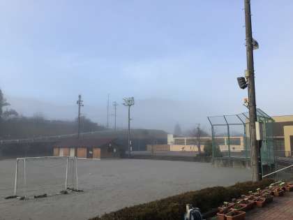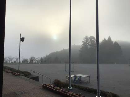おはようございます。学校は今朝も真っ白な霧につつまれています。このあと晴れてくると思います。今日は昼の時間を使って全校体育を行います。別名、全校遊びです。楽しみながら体を動かす活動を年に数回、委員会の子が企画してくれます。日中は暖かくなりそうです。