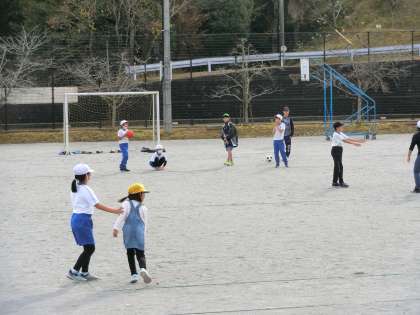 全校遊びが終わった子どもたちは、教室に戻らずに外に飛び出していきました。さっそくいろいろな学年の子がドッチボールを始めました。3年生は一輪車の自主練習をしている子が多いです。ブランコ、サッカーで遊んでいる子もいます。縄とびをしている子もいます。語らっている子もいます。
