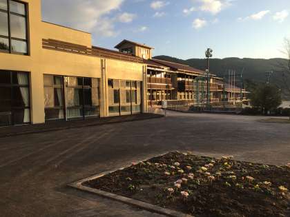 6月から始まった大規模修繕がとりあえず終わりました。今回の修繕では、外壁全体の洗浄と塗装(プール部分については校舎本体とは別ということで外壁塗装は行われていません※残念!)、木製テラスの補強、校内については照明のLED化の工事が主な内容でした。昨日、正門内に設けられていた工事事務所のプレハブも撤去されました。半年間、駐車場が狭くなっておりご不便をおかけしていましたが、車も停めやすくなっています。
