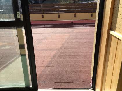 写真は図書室の外のテラス部分です。開校当初、植栽スペースとして植物が植えられていましたが、15年ほど経過し、雑草が生えて荒れた状態になっていました。今回の修繕でお願いして全面を剥がして綺麗にしてもらいました。使えるスペースとして蘇りました。天気の良い日にここで本を読むのもいいと思います。もちろん子どもたちの安全が最優先ですので、そのことを考慮しつつ有効活用していきたいと思います。