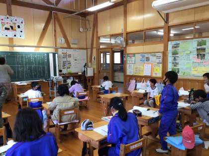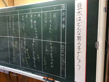 3年生の国語の授業です。「モチモチの木」のお話の読み取りをしていました。有名なお話ですね。昔から絵本や教科書で読んで子どもたちが知っているお話です。積極的に手を挙げて意見を発表する3年生の姿がありました。