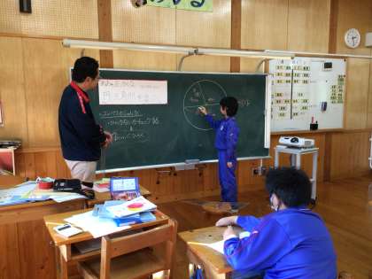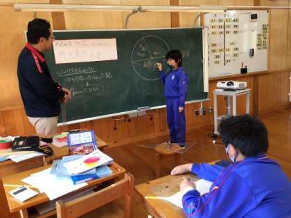 コンパスを使ってかいた円の真ん中から端まで線を引いて定規で長さを測りました。4センチです。4センチが2つで8センチです。黒板に先生が大きくかいた円を使って説明をしていました。上手に説明できました。バッチリです。