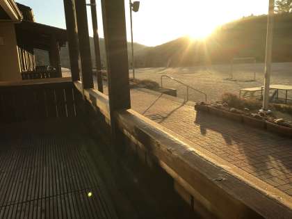 おはようございます。マイナス2度です。家を出た時の気温が1度でしたのでそれより3度も低いです。職員室前のテラスの手すりが霜でキラキラ光っています。体育倉庫の屋根も真っ白です。