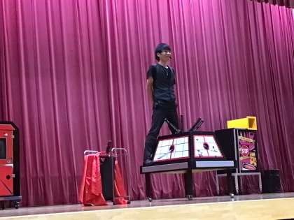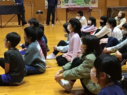 マジックショー 公開日 2022/12/16 更新日 2022/12/16 学校行事 今日の5時間目に全校でマジックショーを楽しみました。次々に繰り出される不思議なマジックに、子どもたちの目はくぎ付けでした。素敵なパフォーマンスを見せてくださったのは豊田市出身でいろいろなところで活躍してみえるプロのマジシャンです。流れるような華麗な手さばきでした。子どもたちは身を乗り出したり、拍手をしたり、歓声を上げたりと、全校で楽しいひと時を過ごしました。