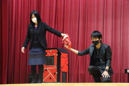 今日マジックを見せてくださった方は、豊田市公認及び名古屋市公認パフォーマーで「WE Loveとよたサポーター」でもあるミステリックSHINYAさんです。本校には、中学校時代のSHINYAさんを担任した先生がいます。SHINYAさんは、中学生の頃から持ち続けていた「マジシャンになりたい」という夢をかなえてプロになったそうです。今では、豊田市や愛知県のみならず日本各地で活躍してみえます。笑顔がとても素敵なさわやかな方でした。