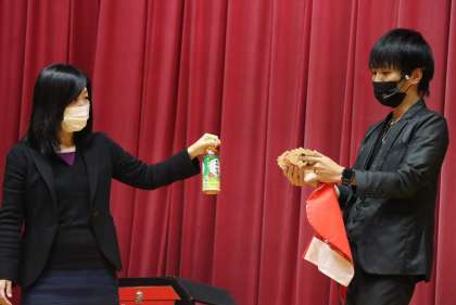 私も指名されて舞台に上がりました。指名されるかも含めて一切教えられていなかったのでドキドキしました。トランプの束から一枚引いて、そのカードに印(大きな顔マーク)を付けました。そのカードは、なんと未開封のペットボトルの中に移動していました。何が起こったかさっぱりわかりません。プロのマジックはすごいです!