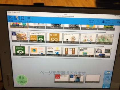 写真は発表に使ったタブレットの画面です。子どもたちが分担して作成した資料が先生のタブレットに集められていて、それを順にスクリーンで映しながら説明しました。