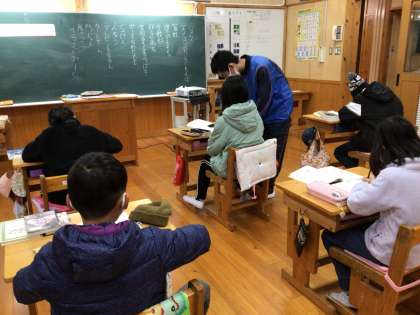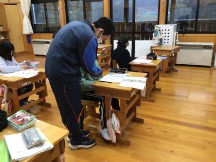 8時半から朝の学習タイムが始まっています。4年生は漢字や算数の復習をしています。