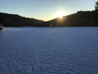 下山でも夜中に雪が降ったようで、道が凍結していました。本校は市街地から通勤してくる職員がほとんどで、事故にはくれぐれも注意してほしいと冬季は特に心配します。今朝も、下山中を過ぎて上り坂のカーブに差し掛かった途端、道路の状況や周りの景色が変わりました。今シーズン初めての雪道走行でしたので、少しドキドキしながら、下りが続くところでは低速ギアで超安全運転で出勤しました。雪を積んだ車にすれ違うたびに、今年もこの季節が来たんだと感じました。