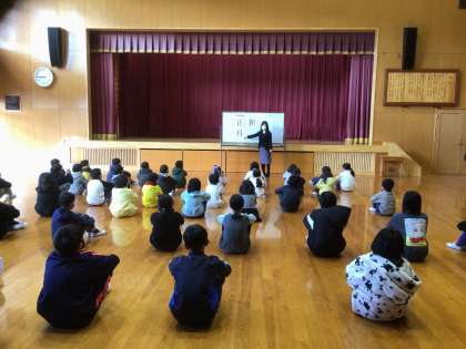 休み明け集会が行われました。校長先生、図書担当の先生、清掃担当の先生の話のあと、元気よく校歌を歌いました。今年もいい年でありますように!
