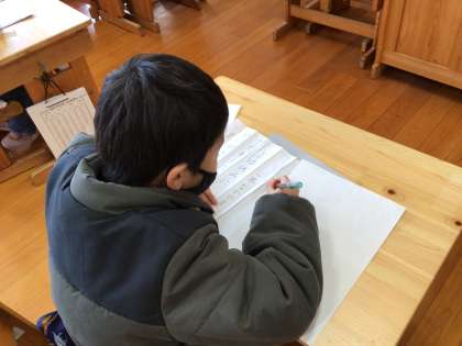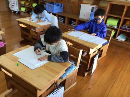 落ち着いた雰囲気です。1、2年生は硬筆(えんぴつ)です。お手本をよく見て丁寧に書きましょう。