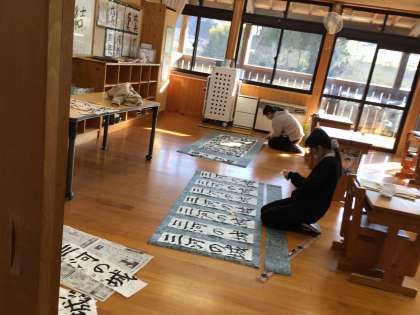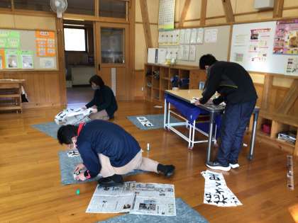 先生たちはさっそく子どもたちの書き初め作品の展示をしています。明日学校に来ると廊下に掲示してありますから楽しみにしていてくださいね。