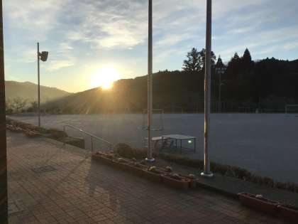 朝学校にきてタブレットを持って外に出ました。気温を確かめ、東の空を撮りました。山の端から射す朝日がまぶしいです。今は一年で最も朝が暗いです。が、これから少しずつ朝が明るくなってきます。