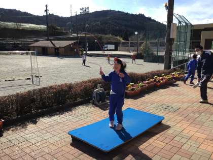 昼の放課です。風が少し冷たいですが子どもたちは元気です。先週から縄跳び強調期間です。放課になるとたくさんの子が外に出てきて練習しています。
