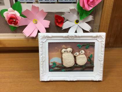 フクロウは幸福を呼ぶ鳥と言われています。校内整備員の江上さんが粘土で手作りをされた額をプレゼントしてくださいました。環境整備や子どもたちの遊具の手づくりなどをしてくださいます。校長室と保健室に飾られたフクロウです。幸運が来ますように。ステキな額をありがとうございます!