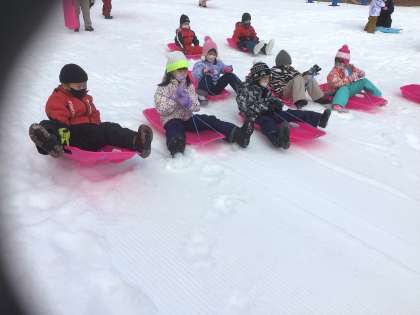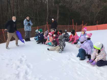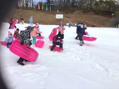 所員の方のお話のあと、待ちかねたように一斉に滑りはじめます!