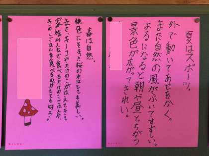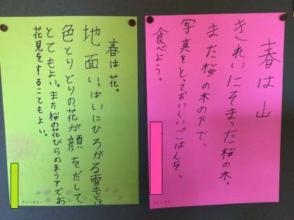 5年生の掲示物です。国語で枕草子を勉強しました。清少納言に負けない感性をもった巴ケ丘の子どもたち。