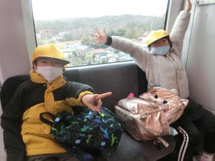 八草からリニモに乗りました。リニモの駅からパークまで歩く時が少し寒かったとのことです。バスも便利ですが、みんなで電車に乗るのは子どもたちにとって楽しかったことでしょう。