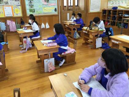 授業が終わった後で、校長室で話が弾みました。子どもの数の減少、空き家や土地問題、農業従事者の高齢化と後継者問題、子どもたちの通学の問題など、今、全国的な問題になっていることがこの下山でも課題としてあります。今日は子どもたちにとって貴重な学習の機会になりました。今日のお話をこれからの学習に役立てていきます。ありがとうございました。