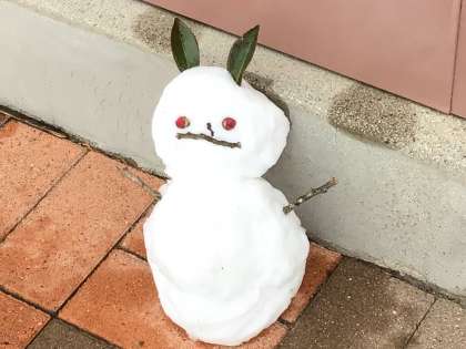 雪は週明けには溶けているでしょうか。テラス前にはいつの間に誰が作ったのか、うさぎの雪だるまが置かれていました。