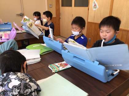 音楽室で授業をしているのは1、2年生です。楽しい歌の活動の後は鍵盤ハーモニカの練習です。「こぎつね」を弾きます。途中で手がお引越しするところがありますよ。まだ少ししか練習していないそうですが上手に弾けていて感心しました。子どもたちは楽しそうに授業を受けていました。