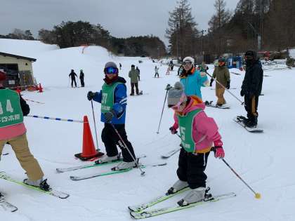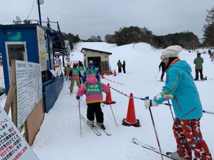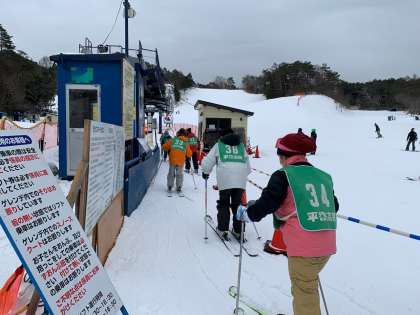 経験者グループはリフトに乗って何本も滑っています。雪質は最高。人工雪も混じっているそうですが、このところの降雪でいいコンディションです。初心者にも滑りやすい雪です。