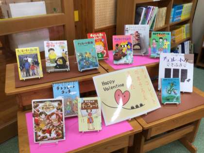 図書室入り口のコーナーに季節のおすすめ本を図書館司書さんが飾ってくれています。先日までは今年の干支にちなんでウサギの本が並んでいましたが、今はチョコレートの本が並んでいます。バレンタインデーですね。慣れた手つきでバーコードリーダーを本に当てて返却している子どもの姿がありました。たくさん読んでくださいね。