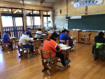 一番下の写真は、多目的室で「6年生を送る会」の準備をしている5年生です。卒業生を送りながら、次は自分たちが最高学年になるという心構えをつくってほしいと思います。