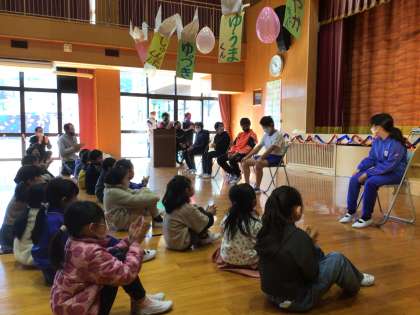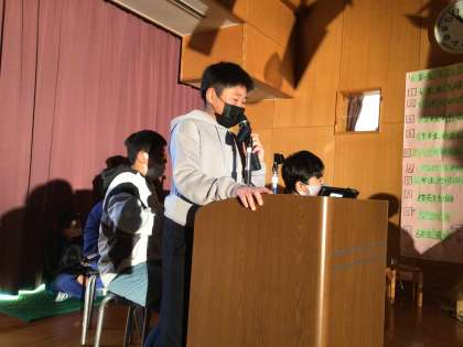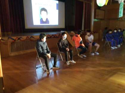 始まりました!6年生を拍手で迎えます。初めはインタビューでクイズ、のコーナーです。