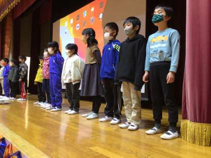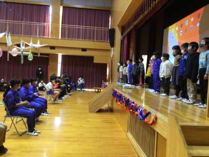 1、2年生は「ひまわりの約束」を歌のプレゼントとして歌ってくれました。とても良かったです。みんなの気持ちが6年生に届きましたよ。