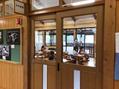 3年生は国語の授業。「ゆうすげ村の小さな旅館」を音読していました。10ページぐらいある長いお話を子どもたちは結構なスピードですらすら読んでいて感心しました。