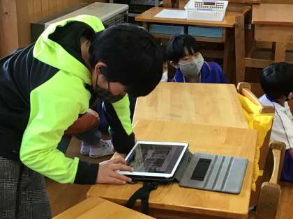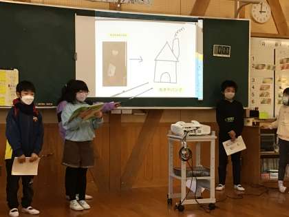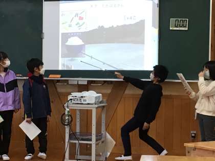 総合(3年生) 公開日 2023/03/03 更新日 2023/03/03 各学年から 3年生は、総合的な学習で民話のこと、下山で活躍されている方たちのこと、安全を守ってくださる方のことなどを1年間勉強してきました。今日は2年生を招いて発表会を行っていました。 大きな声で堂々と発表していて感心しました。黒板に映されているのは子どもたちがタブレットで作成したプレゼン用資料です。イラストや写真が上手に使われていてとても分かりやすいです。タブレットを操作しているのも子どもです。