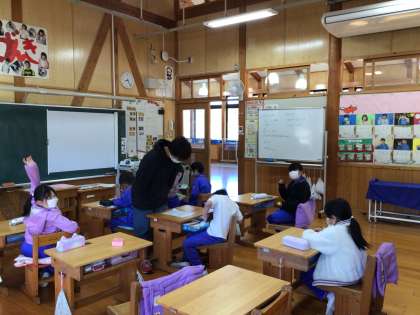 低学年は教室にいる人数が少なめです。朝の支度を済ませて時間を上手に使い、図書室に本を選びに行っている子が多いようです。カードを持って図書室に行く子たちにすれ違いました。たくさん本に親しんでくださいね。