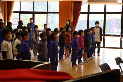 卒業式練習の様子です。本日、卒業式当日のマスクの取り扱いについて実家庭に文書を配付しましたのでご覧ください。初めての全校練習でしたが、子どもたちはしっかり取り組んでいました。良い卒業式になると思います。