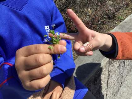 気温は15度。風が心地良いです。サッカーをしている子たちに、マスクを外そうねと声をかけました。が、子どもたちは花粉症の率が結構高いです。この時期、悩ましいですね(という私も花粉症です)。さあ、しっかり遊んだら3時間目をがんばりましょう!