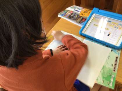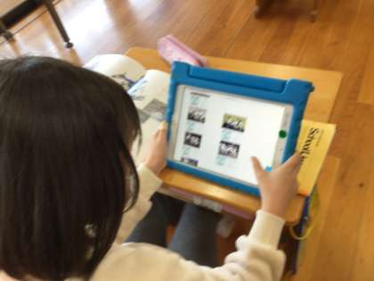 発表ノート 公開日 2023/03/16 更新日 2023/03/16 各学年から 3年生の社会科です。「暮らしを守る」の単元などで学んだことや話を伺ったことなどをスカイメニューの発表ノートでまとめていました。この子たちが1年生の時に配られたタブレット。手を洗って、ログインして、写真を撮ることを覚えて…と一つ一つ学んですっかり使い方に慣れました。画面上で写真を移動させたり文字を打ち込んだりと、手慣れた様子で作業をしていました。