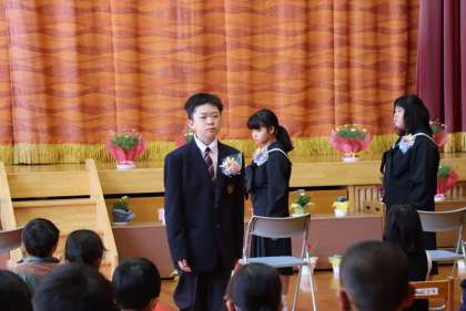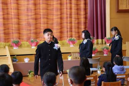 小学校最後の校歌を歌った卒業生たちは、会場の拍手に包まれて退場しました。良い卒業式でした。