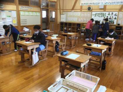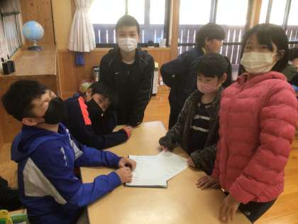 6年生は、2グループに分かれて話し合いです。話し合いの内容は、1年生を迎える会の内容と運動会の一輪車の演技内容についてです。5年生はさっそく算数の授業に集中して取り組んでいました。両学年とも、さすが高学年ですね。