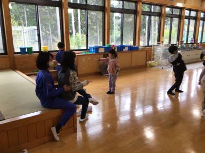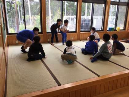 畳の上では相撲が始まりました。手加減しながら仲良く遊んでいます。
